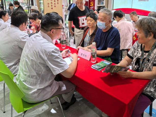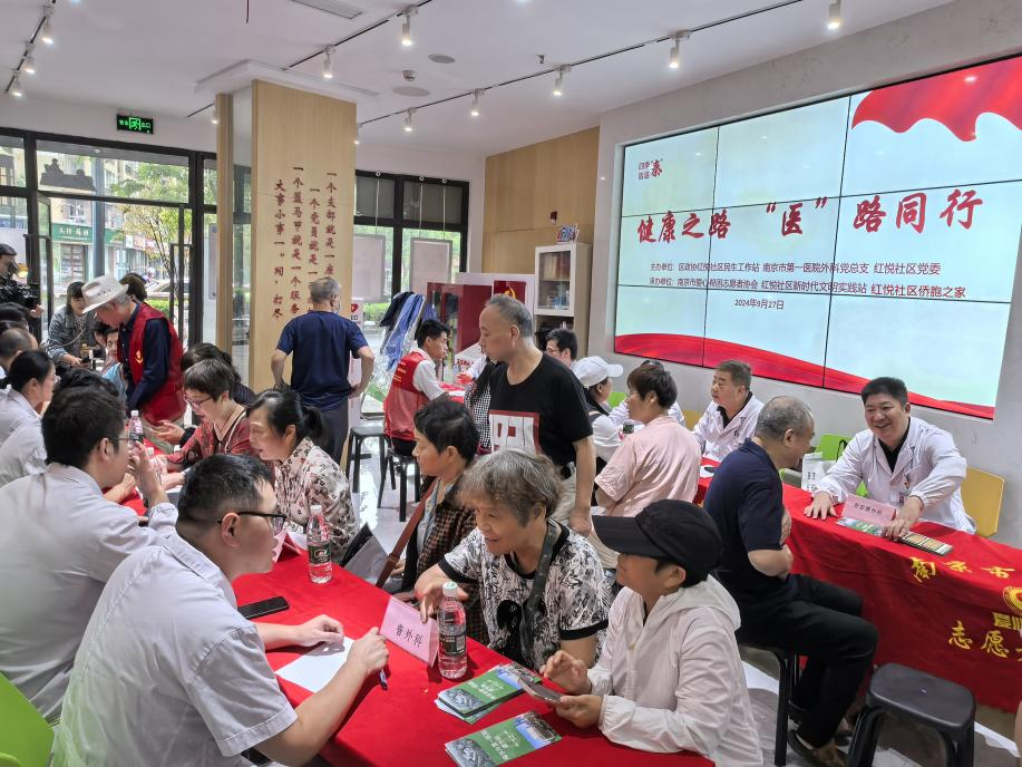 9月29日上午,秦淮区红花街道麻豆 联合麻豆 第一医院外科党总支、区政协红悦社区民生工作站共在红悦社区“侨胞之家”开展“健康之路,‘医’路同行——国庆义诊”活动。