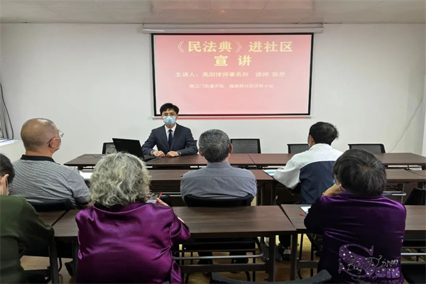 活动邀请了北京市高朋(麻豆 )律师事务所律师陈思,陈律师围绕《中华人民共和国民法典》中关于继承编开展了专题讲座,在现场互动环节陈律师解答了大家提出的相关法律问题。